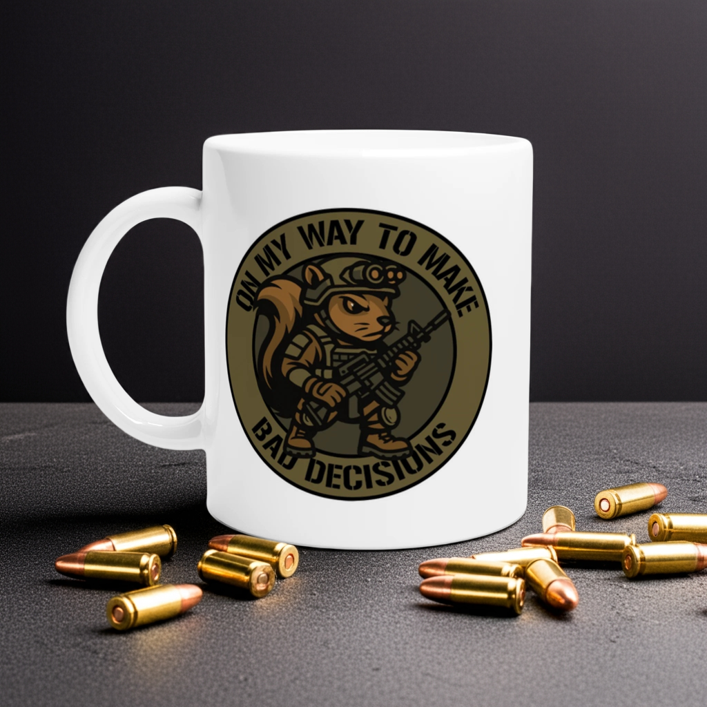 Taza de cerámica blanca de 325 ml "Malas decisiones"